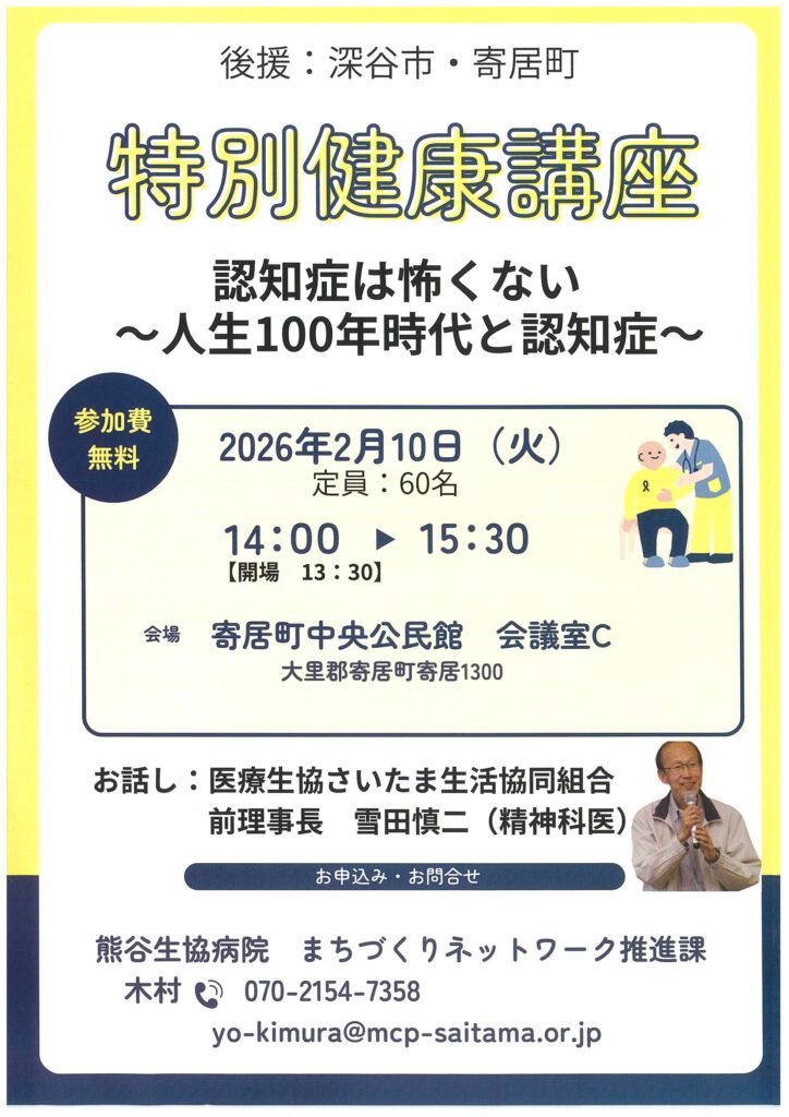 認知症は怖くない~人生100年時代と認知症~と題しまして講座を開催いたします。